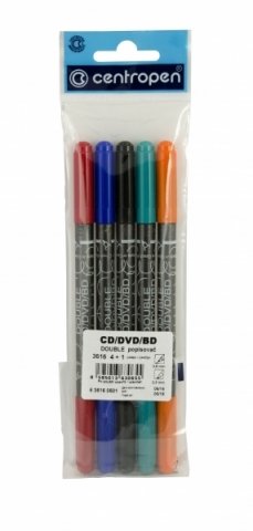 Permanentný obojstranný popisovač (značkovač, marker) určený na popisovanie kompaktných CD/DVD/DB diskov. Značkovač je plnený permanentným atramentom vyrobeným na alkoholovej báze. Má dva hroty a ergonomický dizajn. Sada obsahuje 4 farby popisovačov.