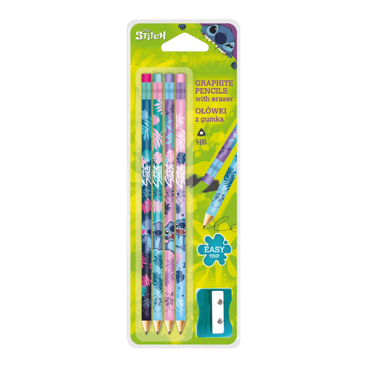 Grafitová ceruzka s veselým motívom tela roztomilého Stitcha. Mäkká farebná guma umožňuje odstránenie kresby bez poškodenia papiera. Tuha je lepená po celej dĺžke a je odolnejšia proti polámaniu. Trojhranný tva rposkytuje pohodlný úchop počas písania alebo kreslenia.